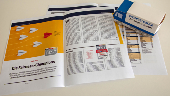 Mit der Auszeichnung „Höchste Kundenzufriedenheit“ darf sich das Umzugsunternehmen DACHSER & KOLB über eine weitere Bestätigung seiner Tätigkeit freuen. FOCUS MONEY und DEUTSCHLAND TEST haben die wissenschaftliche Studie in Auftrag gegeben.