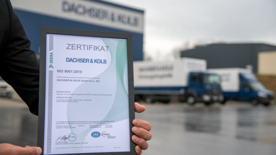 DACHSER & KOLB hat von der DEKRA die Zertifizierung für das Qualitätsmanagement nach der ISO-Norm 9001:2015 erhalten. Im Prüfverfahren wurde von der Zertifizierungs-Organisation nachgewiesen, dass die internen Abläufe dem internationalen Standard für Qualitätsmanagement entsprechen. Im Rahmen der Begutachtung sämtlicher Produkte, Prozesse und Leistungen bezüglich der Umzugslogistik wurden alle Prüfkriterien erfüllt.